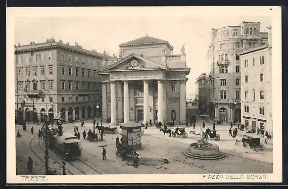 AK Trieste, Piazza Della Borsa, Strassenbahn