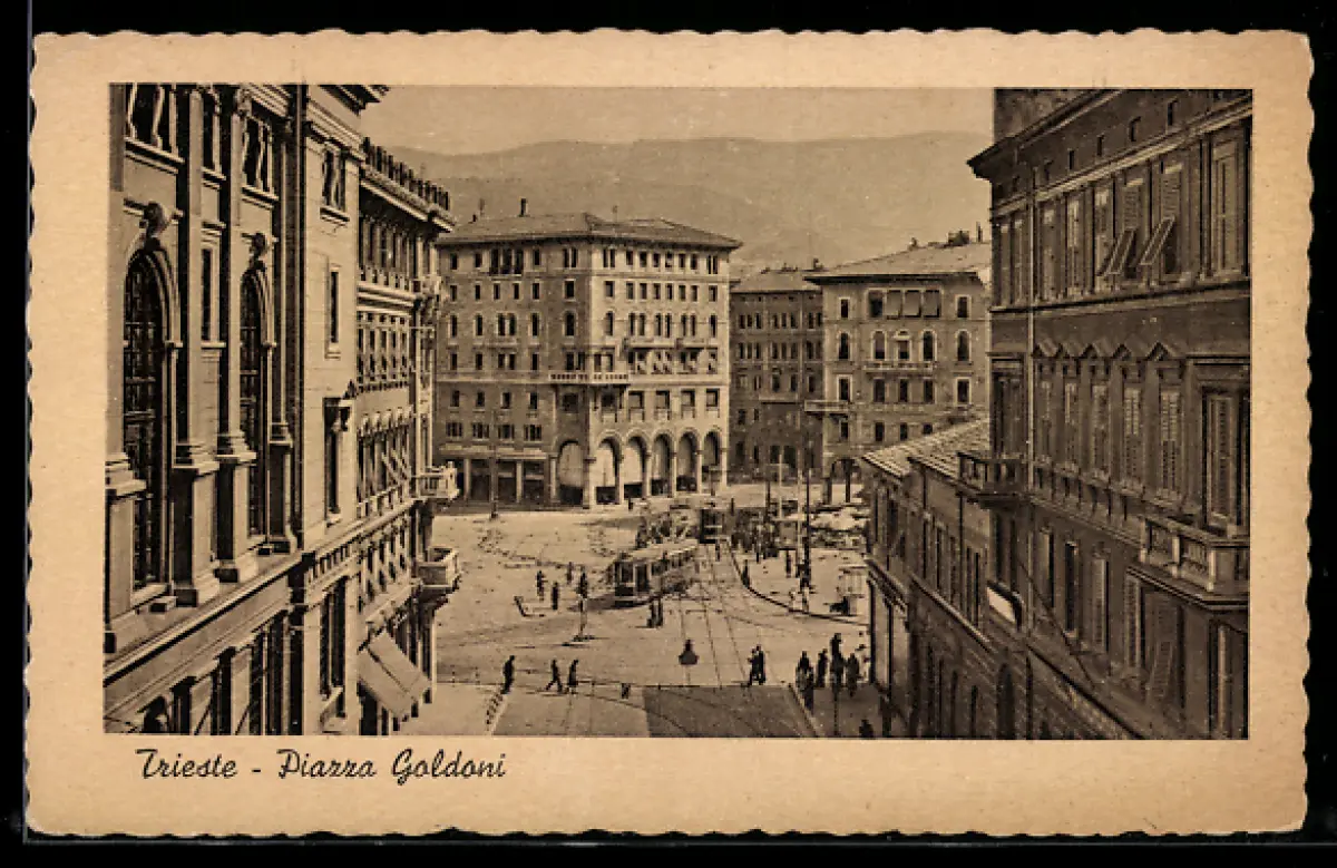 AK Trieste, Piazza Goldoni, Strassenbahn