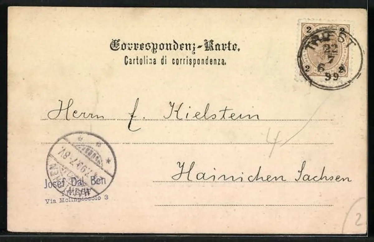 alte Ansichtskarte, gelaufen 1899, Eckknick rechts unten, guter Zustand