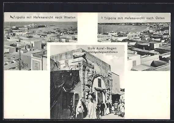 AK Tripolis, Mark-Aurel-Bogen, Hafenansichten nach Osten und Westen