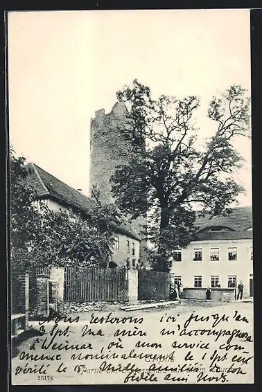 AK Triptis, Partie am Schlossplatz mit altem Turm