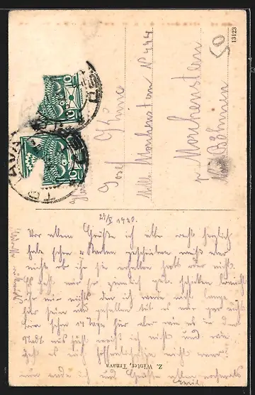 alte Ansichtskarte, gelaufen, Briefmarke entfernt, rückseitig Oberflächenschaden, guter Zustand