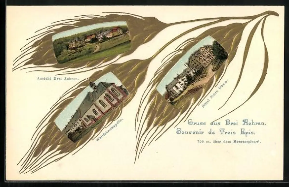 AK Trois Epis, différentes vues, vue générale, chapelle, hôtel Notre-Dame