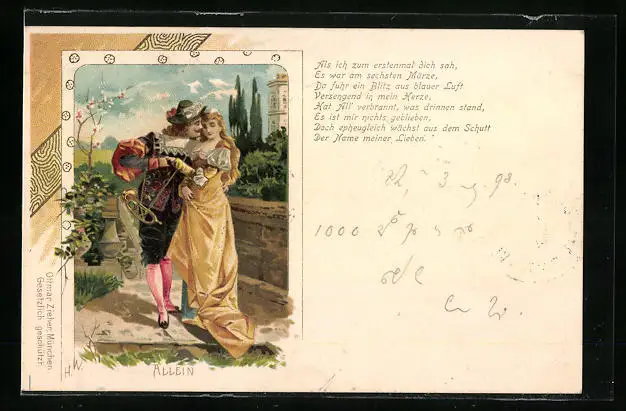 alte Ansichtskarte, gelaufen 1898, Stempelspur, guter Zustand