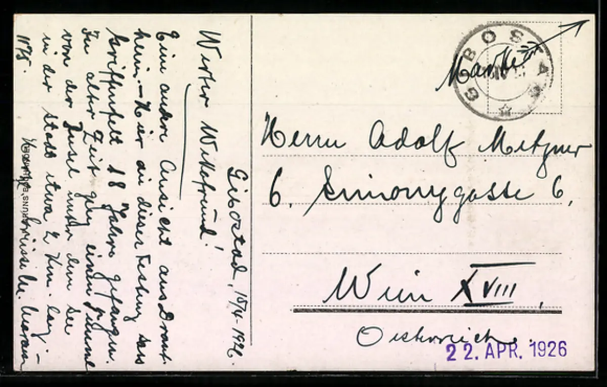 gelaufen 1926, Eckknick oben rechts, guter Zustand