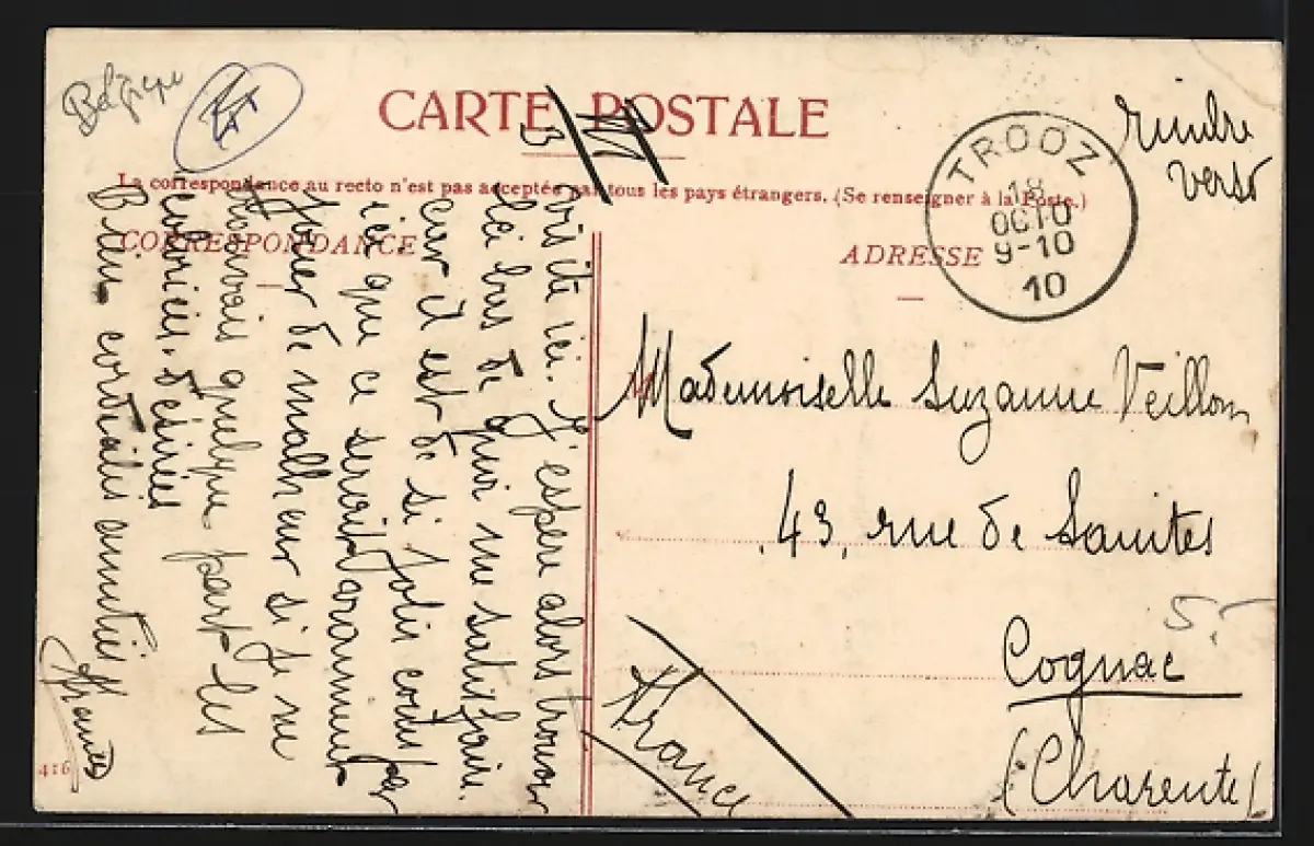 gelaufen 1910, Eckknick li. oben, Abriebspur re. mittig, guter Zustand