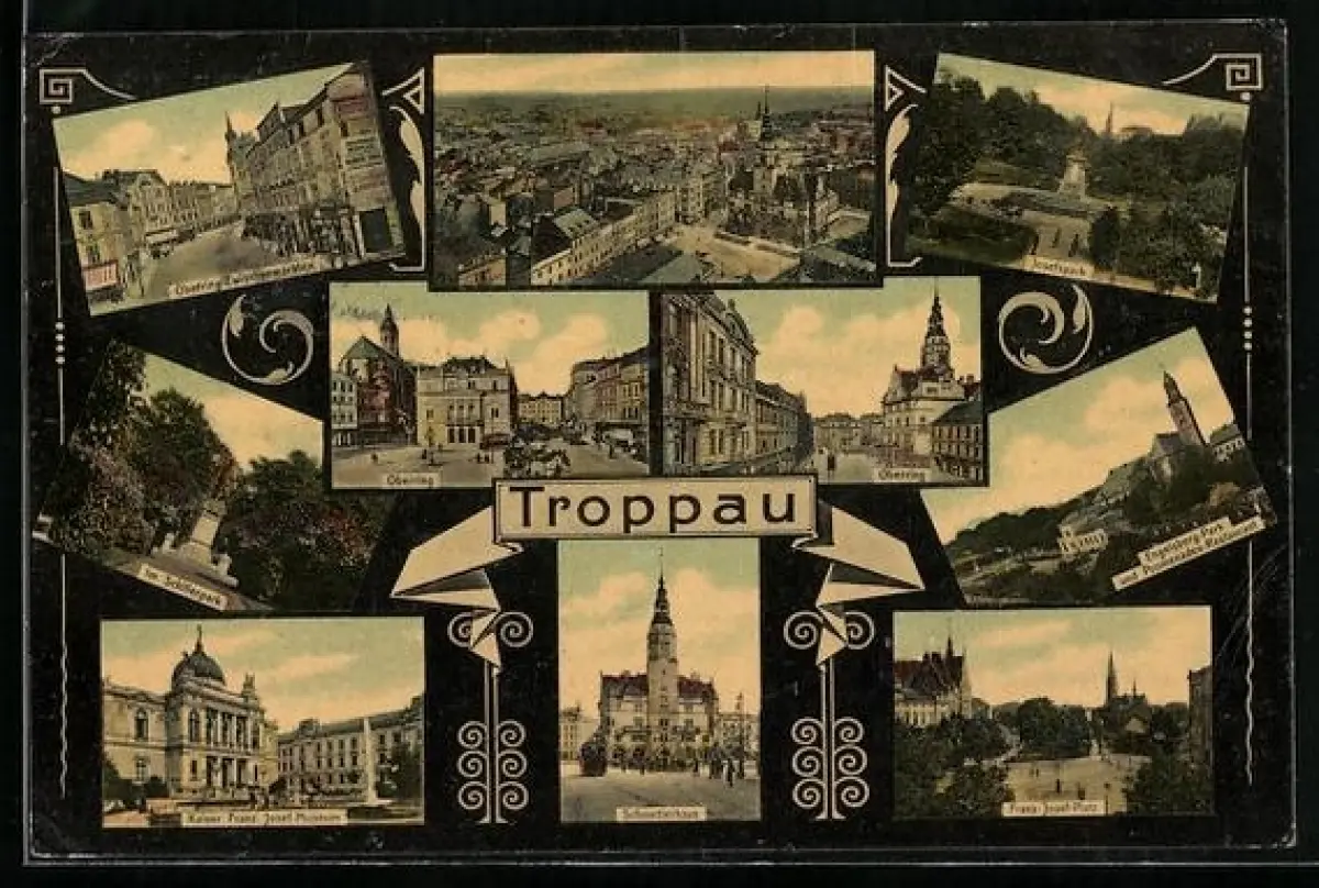 AK Troppau, Kaiser Franz Josef-Museum, Schmetterhaus, Josefspark