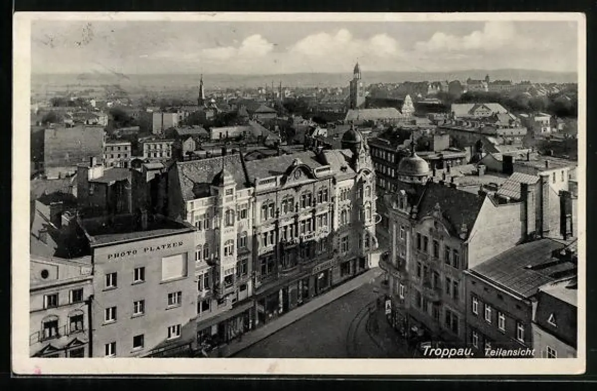 AK Troppau, Teilansicht mit Photo-Geschäft Platzer