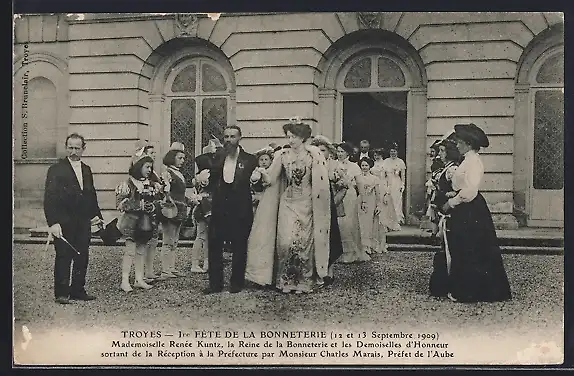AK Troyes, 1er Fête de la Bonneterie 1909, sortie de la réception à la Préfecture par M. Charles Marais