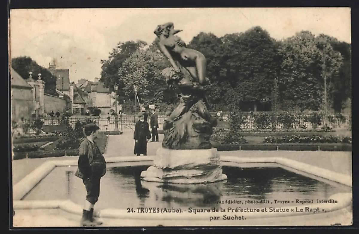 AK Troyes /Aube, Square de la Préfecture et Statue «Le Rapt» par Suchet
