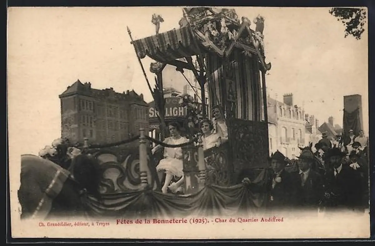 AK Troyes, Fêtes de la Bonneterie 1925, Char du Quartier Audiffred