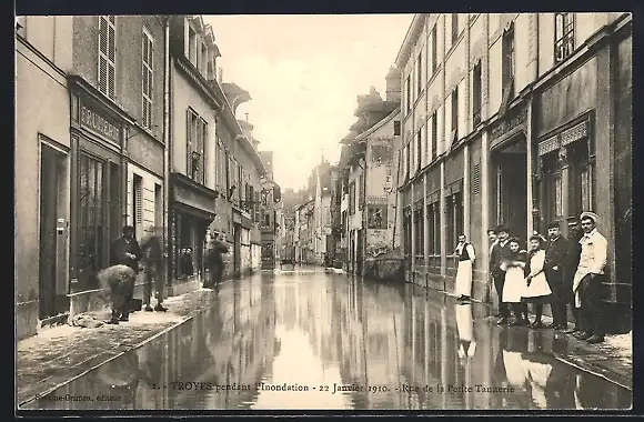 AK Troyes, Inondations 1910, Rue de la Petite Tannerie