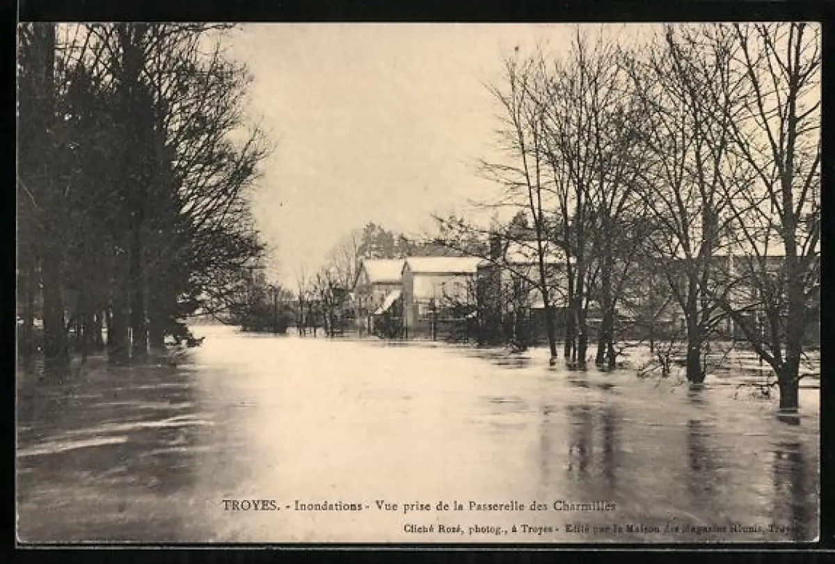 AK Troyes, Inondations, Vue prise de la Passerelle des Charmilles
