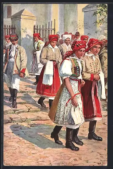 AK Tschechinnen in Trachtenkleidung auf der Strasse