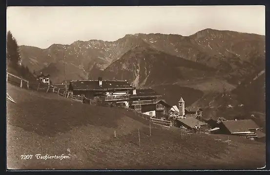 AK Tschiertschen, Ortspartie mit Bergen