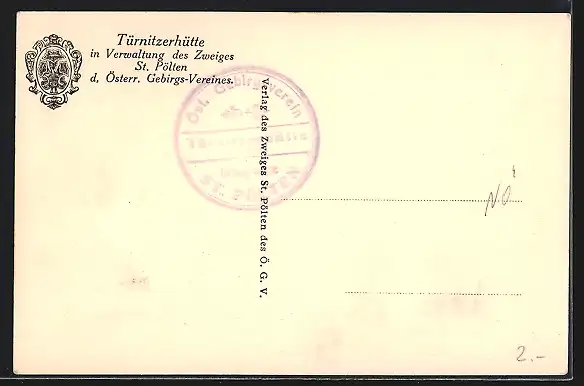 AK Türnitzer Höger, Türnitzerhütte in Verwaltung des Zweiges St. Pölten d. Österr. Gebirgsvereins, Berghütte