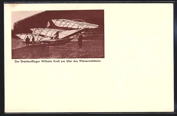 AK Tullnerbach, Wilhelm-Kress Ehrung 1936, Drachenflieger Wilhelm Kress am Ufer des Wienerwaldsees