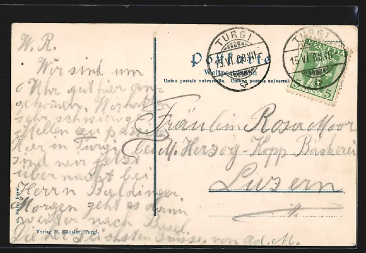 gelaufen 1908, Eckknick unten re., Stempelspur, guter Zustand