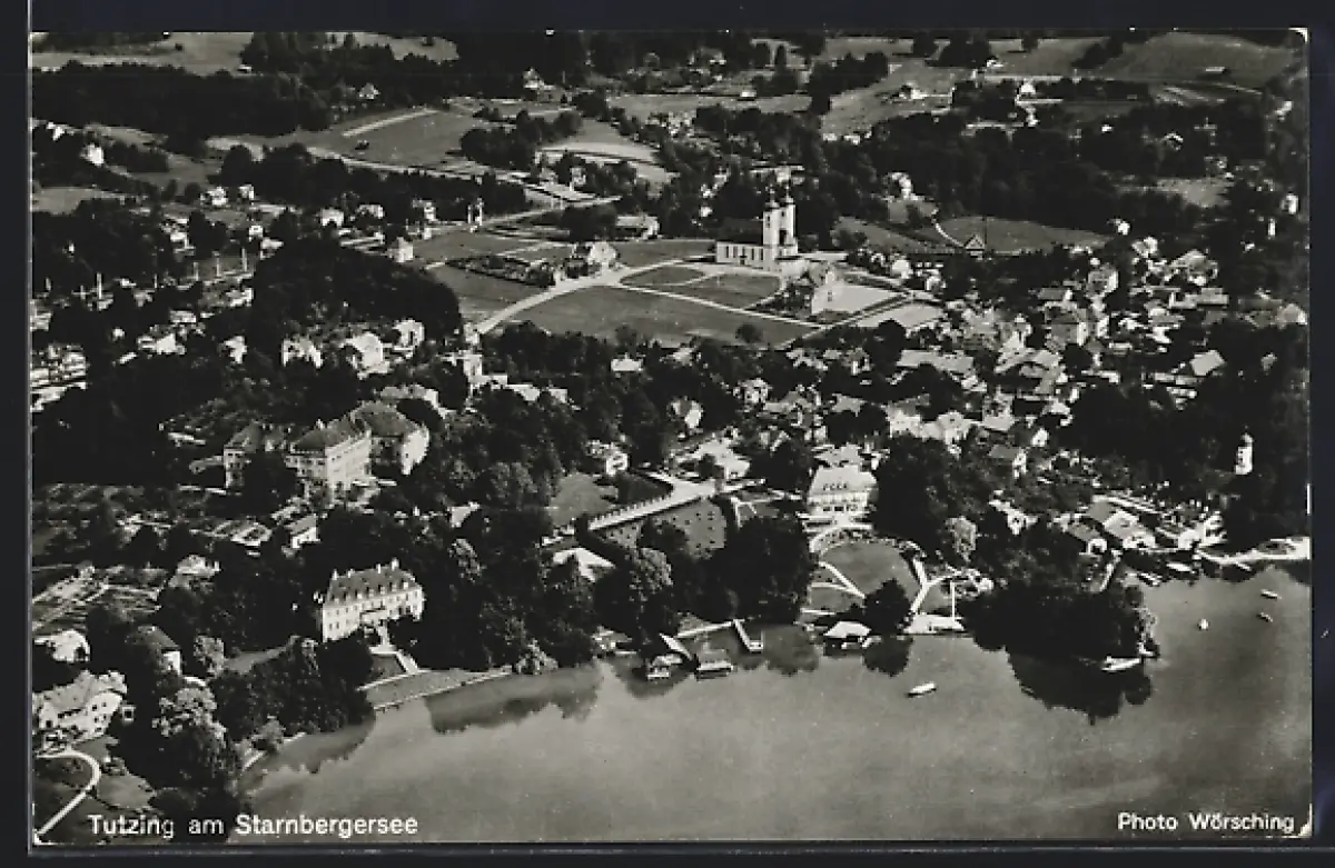 AK Tutzing am Starnbergersee, Luftaufnahme, Kirche, Seeufer