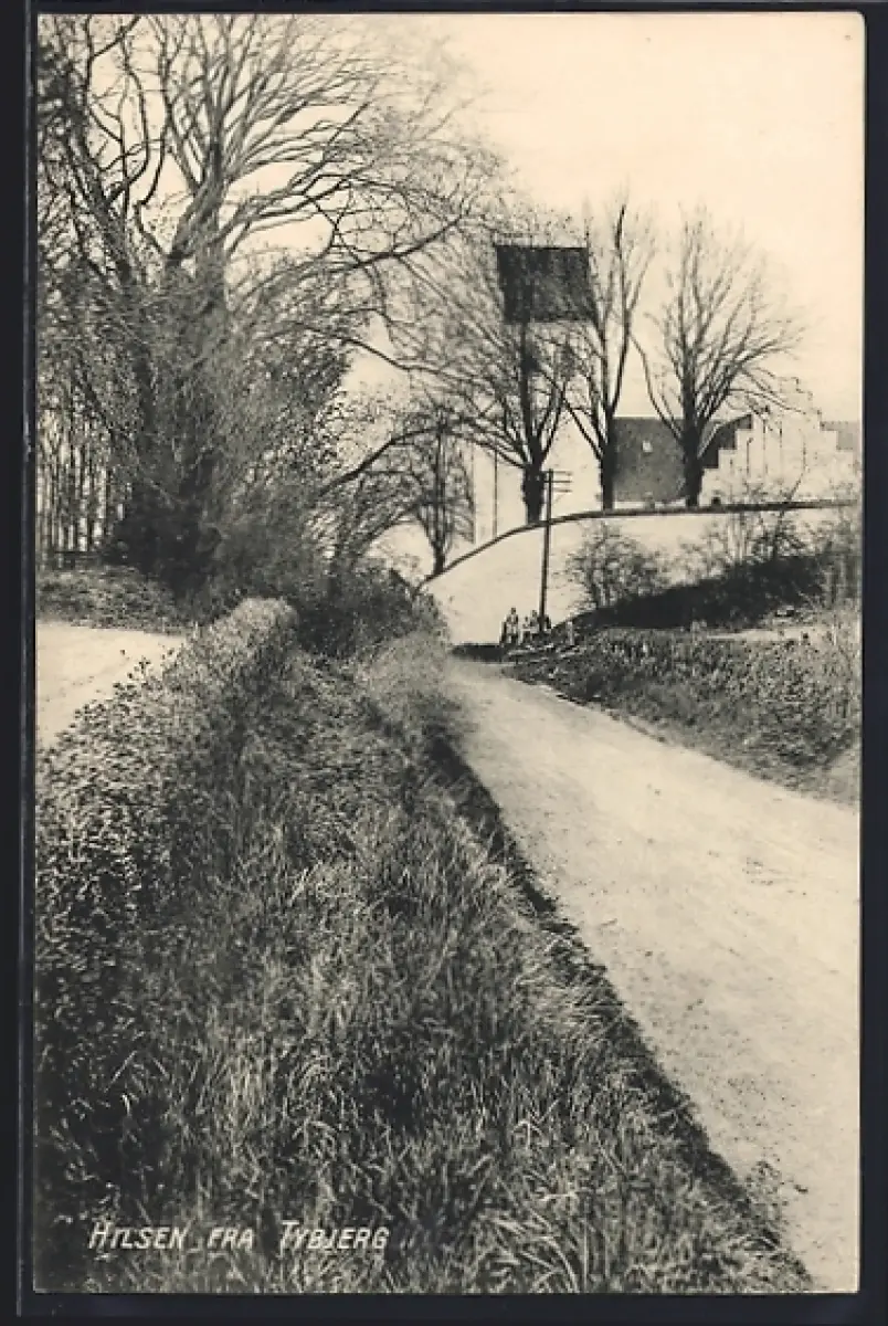 AK Tybjerg, Ortseingang mit Blick zur Kirche