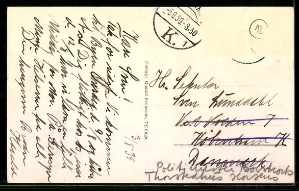 gelaufen 1939, Briefmarke entfernt, guter Zustand