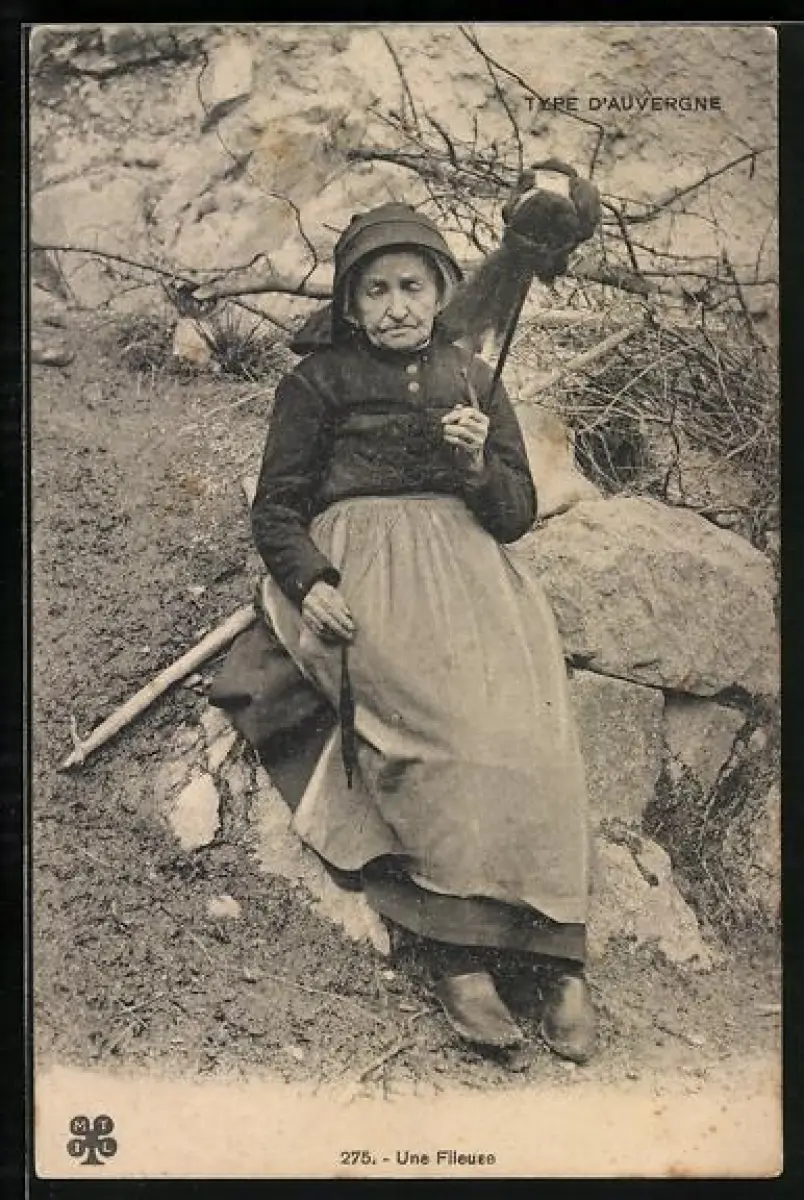 AK Type d'Auvergne, une fileuse, Spinnerin bei der Arbeit