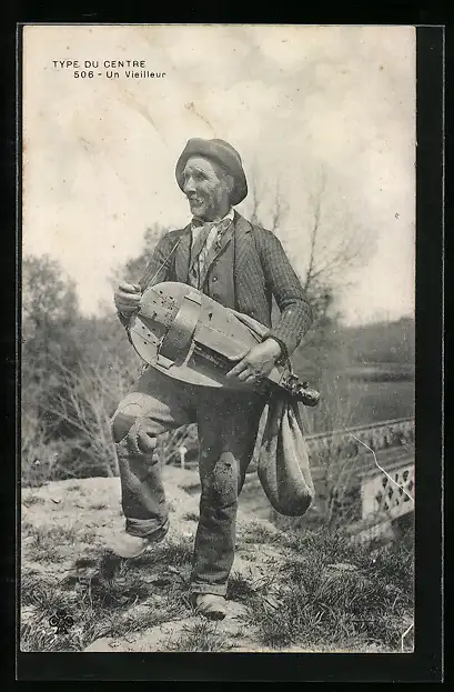 AK Type du Centre, alter Man mit einer Drehleier