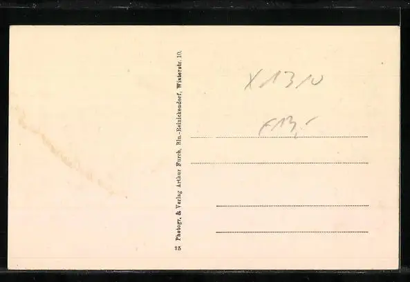 Personenbezogene Daten auf der Rückseite der Karte wurden durch blauen Textmarker unkenntlich gemacht. Die blauen Stellen sind auf die Vorderseite durchgeweicht und wirken sich negativ auf das Postkartenfoto aus
