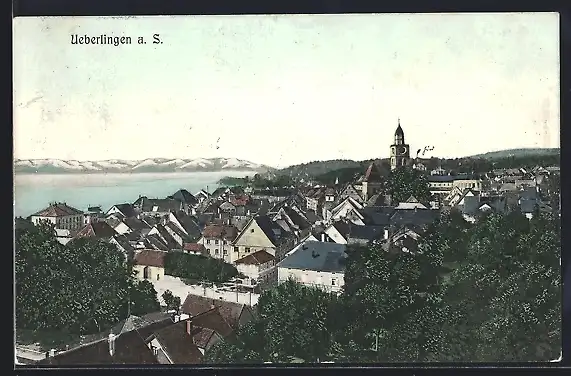 AK Ueberlingen / Bodensee, Ortsansicht mit Kirche
