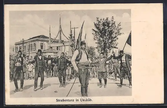 AK Uesküb, Männer beim Strassentanz