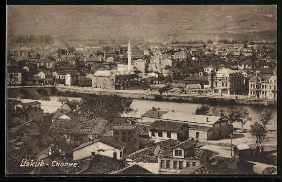 AK Üsküb, Totalansicht mit Moschee aus der Vogelschau