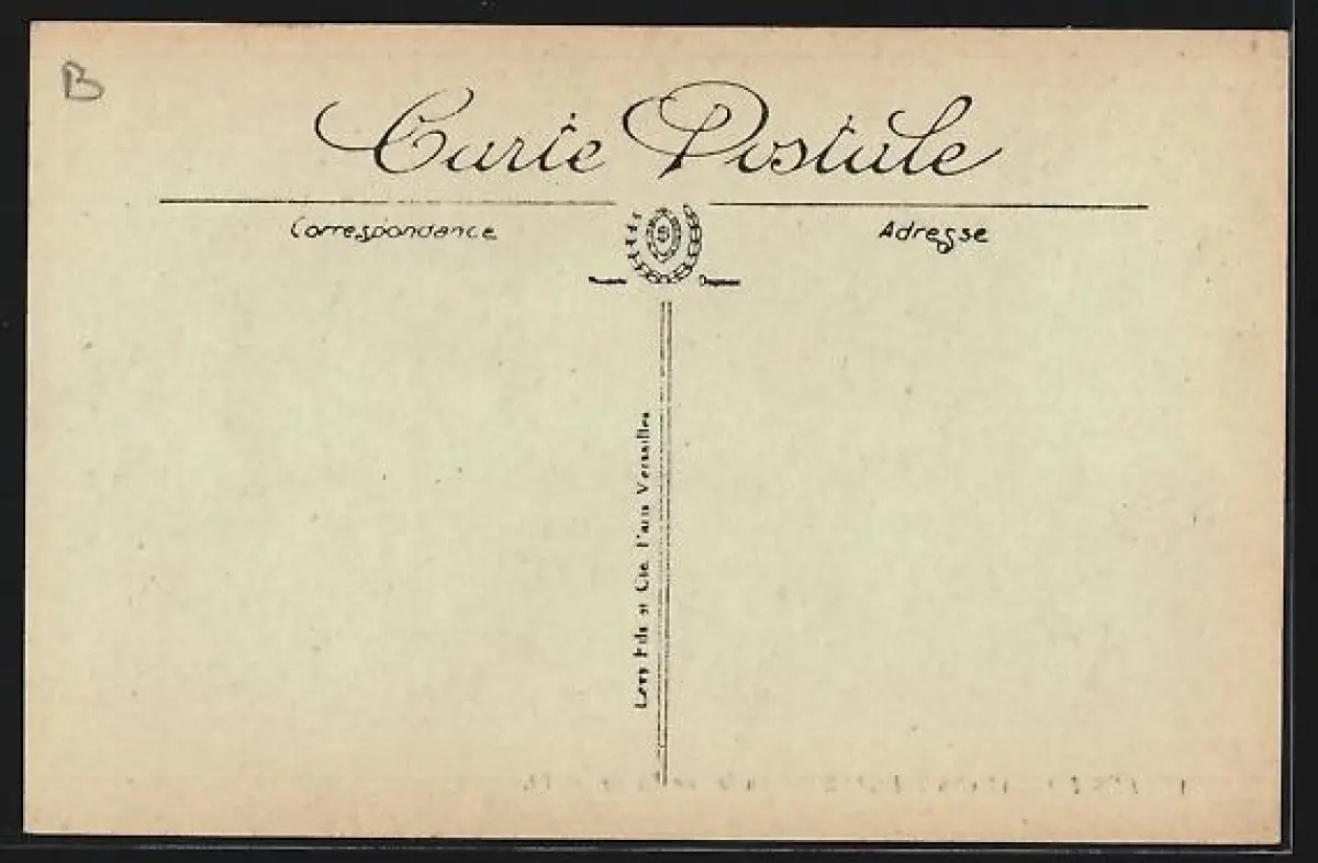 Personenbezogene Daten auf der Rückseite der Karte wurden durch blauen Textmarker unkenntlich gemacht. Die blauen Stellen sind auf die Vorderseite durchgeweicht und wirken sich negativ auf das Postkartenfoto aus