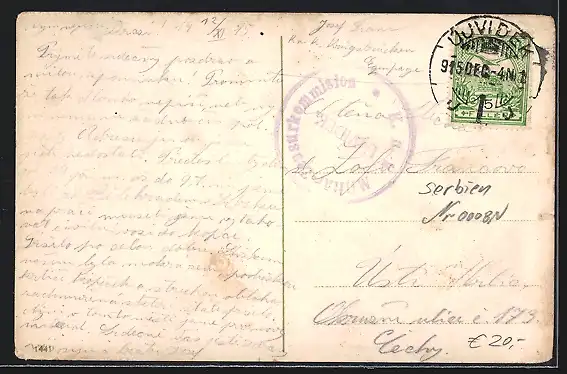 gelaufen 1915, Eckknick li. oben, guter Zustand