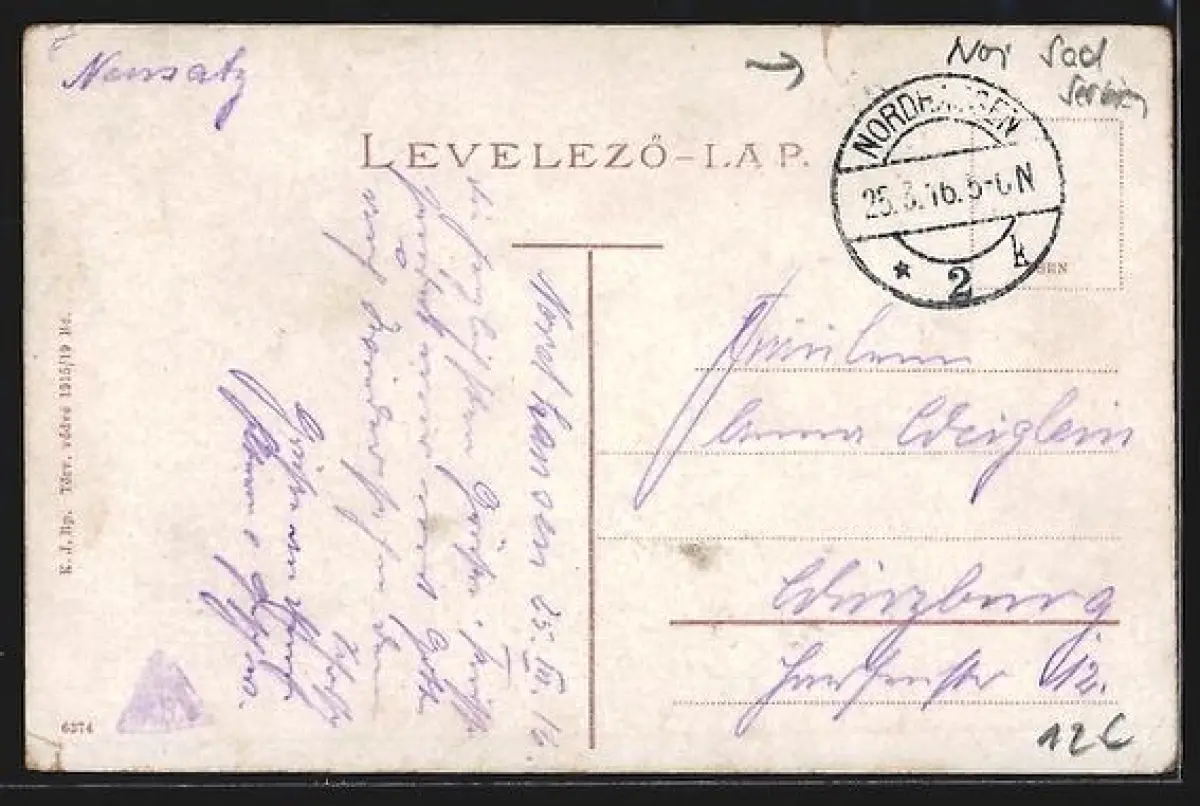 gelaufen 1916, kl. Einriss oben, guter Zustand