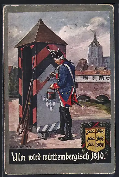 AK Ulm / D., Soldat streicht das Wachhäuschen, Wappen
