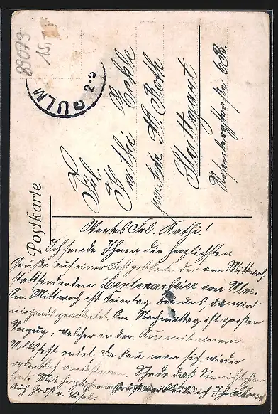 alte Ansichtskarte, gelaufen, Eckknick li. oben, Briefmarke entfernt, guter Zustand