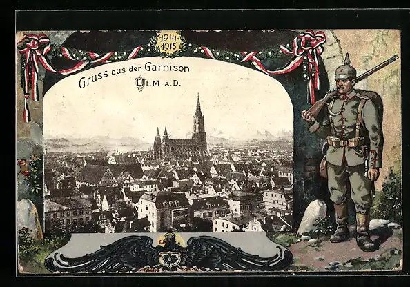 AK Ulm / Donau, Ortsansicht, Soldat in Garnisons-Uniform