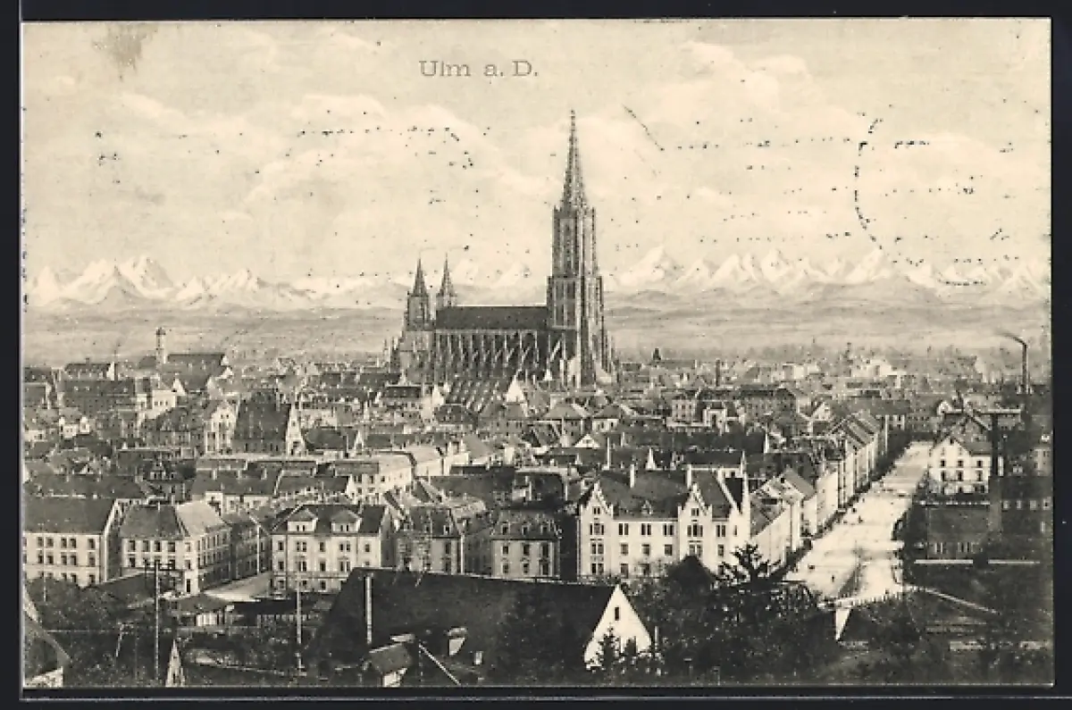 AK Ulm a. D., Stadtansicht mit Münster und Alpenpanorama