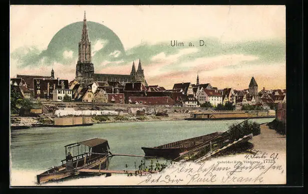 AK Ulm a. D., Uferpartie mit Dom