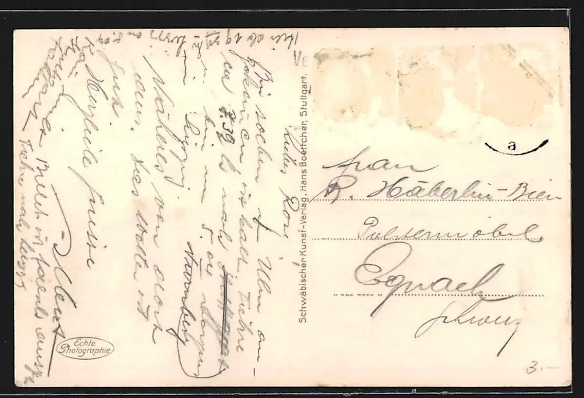 alte Ansichtskarte, gelaufen, Briefmarke entfernt, rückseitig Oberflächenschaden, guter Zustand