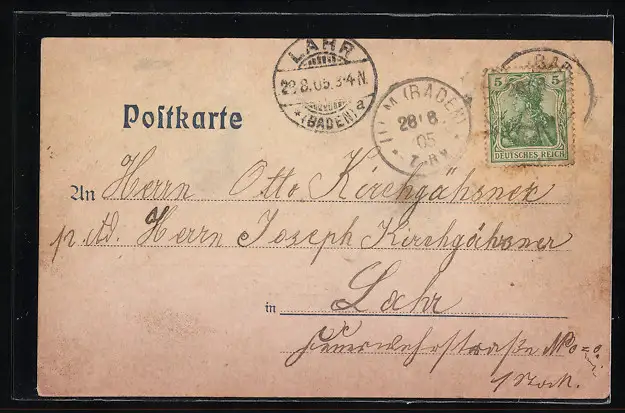 gelaufen 1905, Eckknick li. unten, guter Zustand