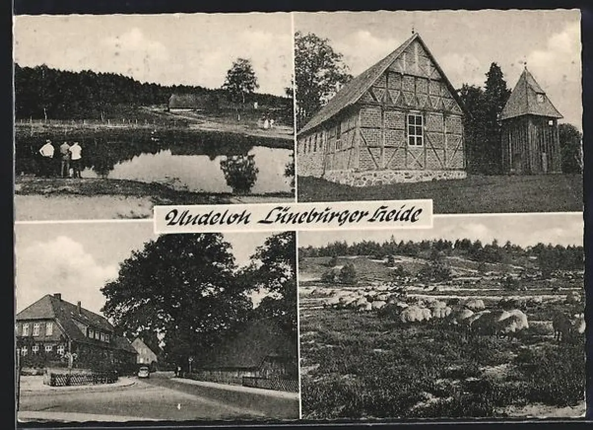AK Undeloh /Lüneburger Heide, Strassenpartie, Fachwerkhaus, Heide mit Schafen
