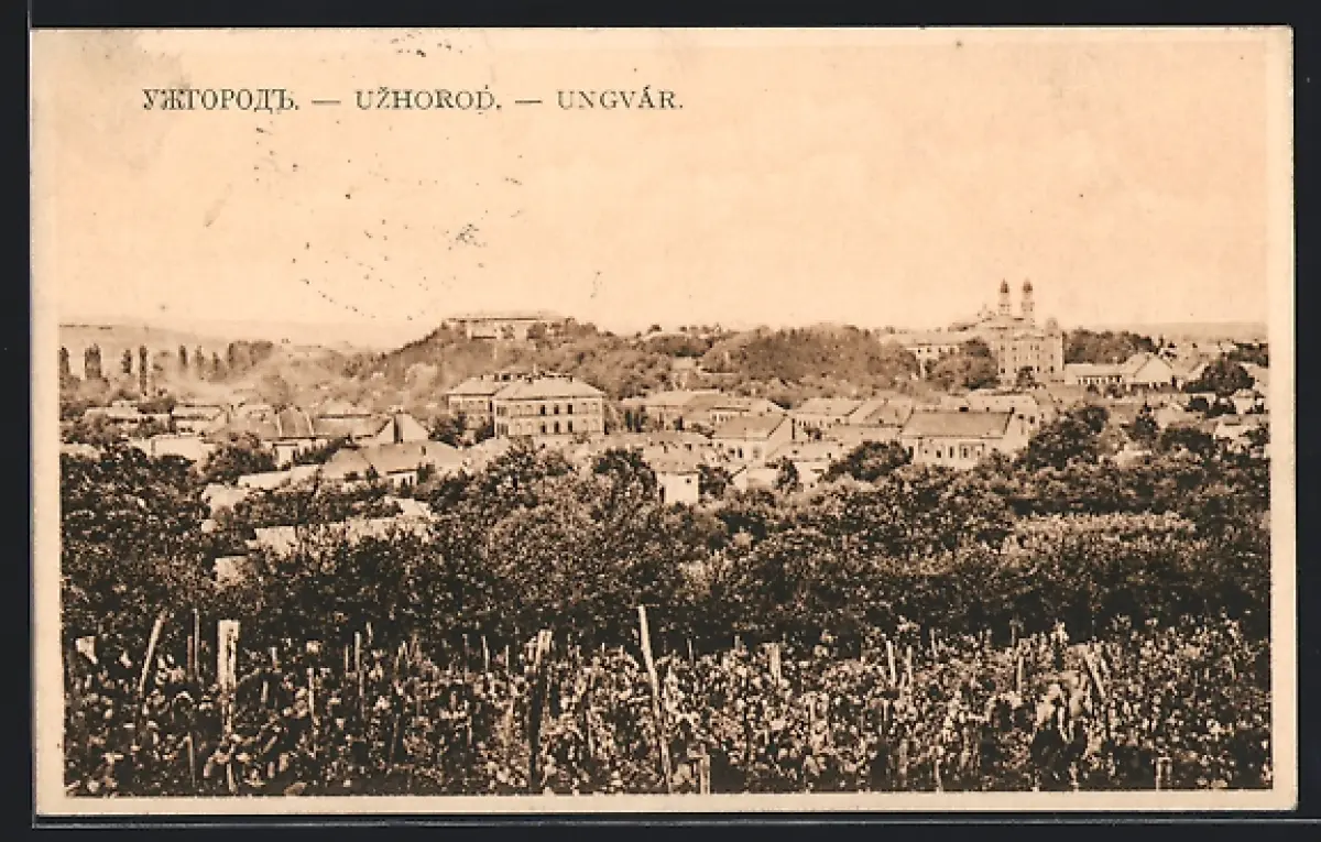 AK Ungvar / Uzhorod, Totalansicht vom Feld gesehen