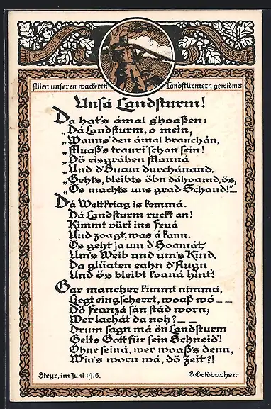 AK Unsa Landsturm, Gedicht von Goldbacher