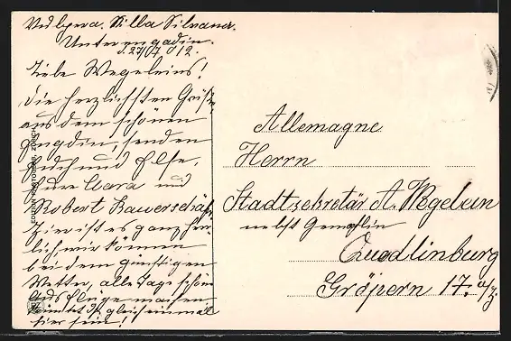 alte Ansichtskarte, gelaufen, Briefmarke entfernt, rückseitig Oberflächenschaden, guter Zustand