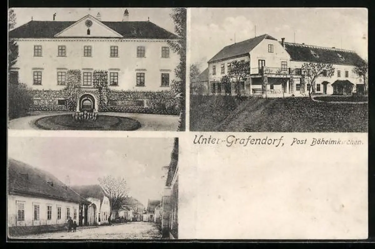 AK Unter-Grafendorf, Villa mit Park, Ortspartie