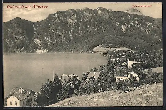AK Unterach am Attersee, Gesamtansicht aus der Vogelschau