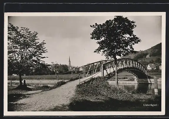 AK Unterägeri, Uferpartie mit Brücke