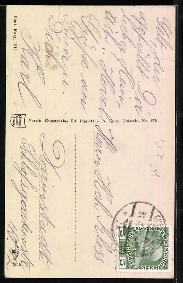 alte Ansichtskarte, gelaufen, Bugspur li. oben u. oben re., guter Zustand