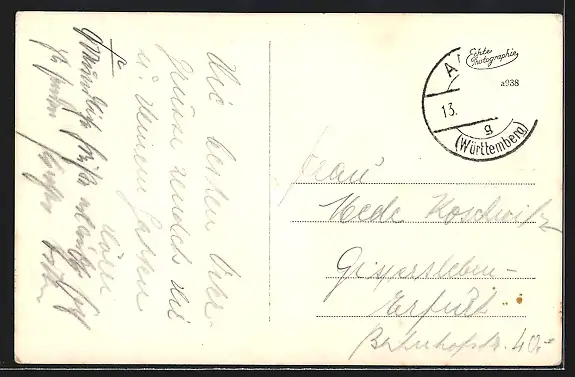 alte Ansichtskarte, gelaufen, Briefmarke entfernt, guter Zustand